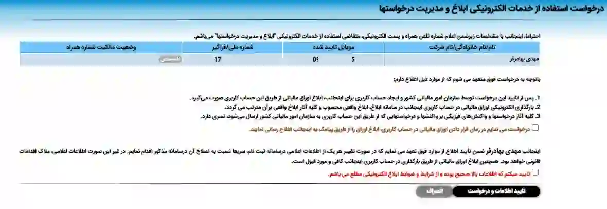 تایید نهایی اطلاعات سامانه کد مالیاتی